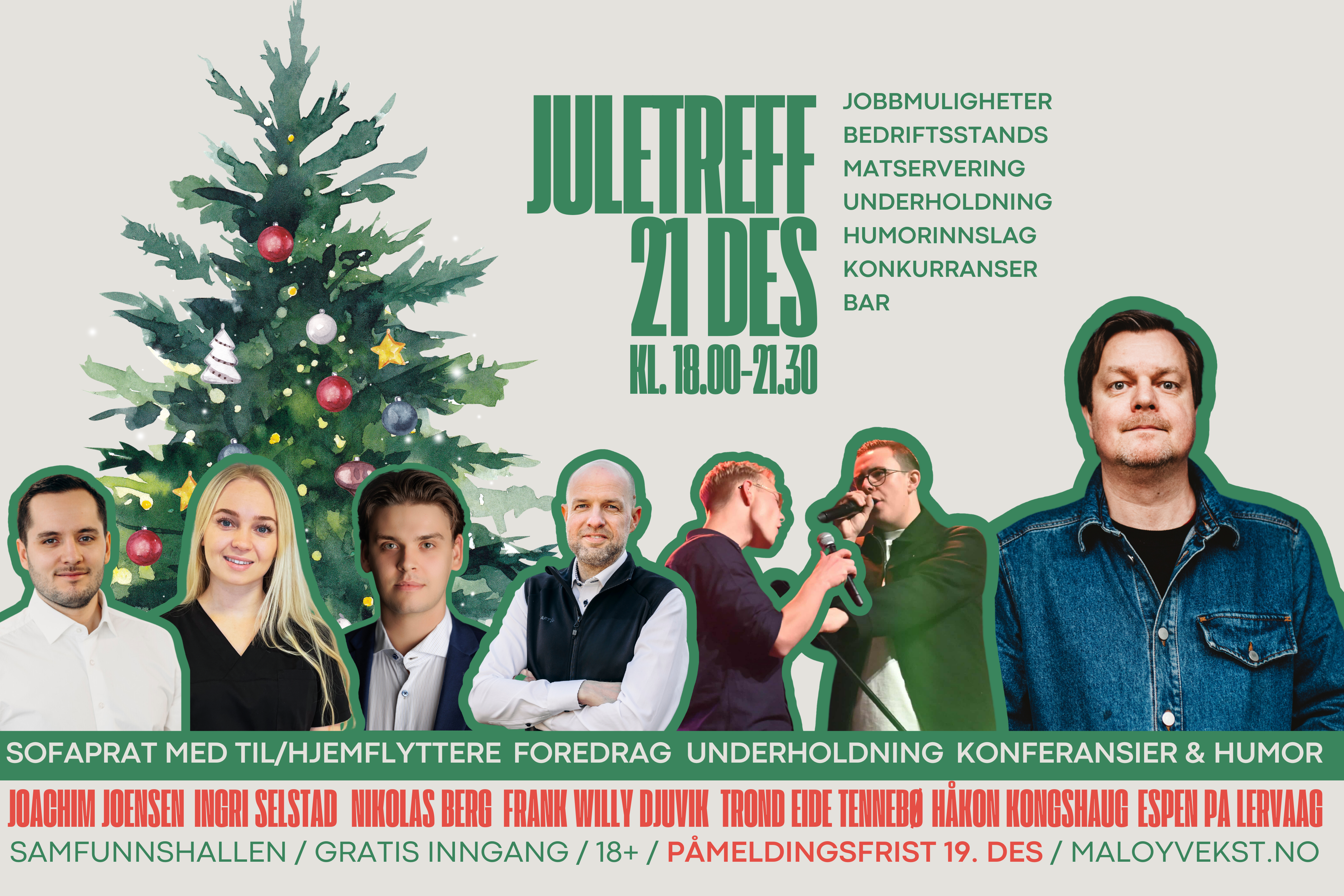 Velkommen til årets juletreff i Måløy! Her finner du informasjon om programmet, hvilke bedrifter du kan møte, konkurranser og annet som kan vere praktisk å vite.